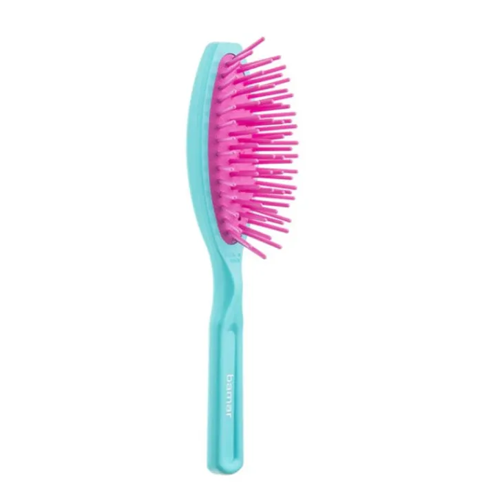 Su diseño ergonómico se adapta a la forma y tamaño de la mano de forma cómoda y natural. Incluye un mango flexible de goma que se adapta a la presión en el momento del cepillado. Bamar Cepillo Neumático Bolso Púa Gruesa Color es perfecto para llevar siempre en el bolso. Refuerza el cabello y facilita el desenredado, el peinado luce suelto, sedoso