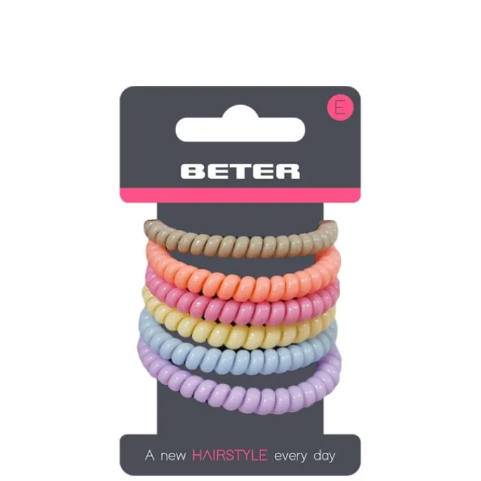 Estos 6 coleteros espirales en tono pastel de la colección Born from the Stars, sujetan con firmeza no dejan marcas y evitan que el cabello se enrede. Pueden utilizarse solos o combinarse entre ellos para crear recogidos, coletas, trenzas… Su diseño evita marcas en el cabello y mantiene el peinado sujeto. Con Beter Coleteros Espiral Born From The Stars obtenemos protegemos el cabello y obtenemos peinados originales y únicos.