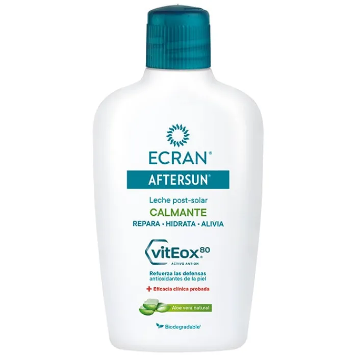 Aftersun Leche Hidratante Reparadora con Aloe Vera de Ecran, calma, hidrata y repara tu piel tras la exposición al sol.