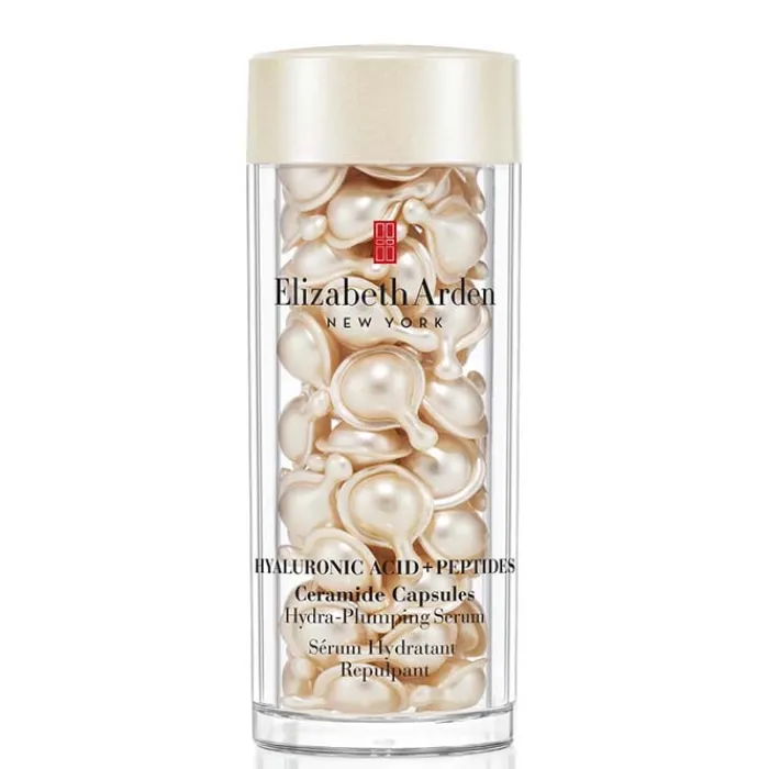 La fórmula de alta eficacia de Elizabeth Arden Hyaluronic Acid + Peptides Ceramide Capsules aumenta los niveles naturales de ácido hialurónico de la piel, actuando de forma más profunda y rellenando la piel en 10 minutos. Además, contiene un complejo de péptidos que actúan reforzando el colágeno natural de la piel para redefinir el contorno facial y mejorar la firmeza.