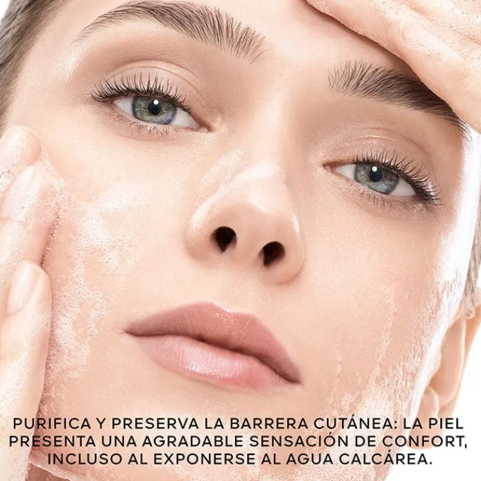 Este mousse limpiador elimina eficazmente las impurezas, polución y maquillaje preservando la piel. Su rica formulación con un 90% de ingredientes de origen natural, contiene jalea real enriquecida con micro perlas lipídicas que se funden al contacto con la piel logrando suavidad, incluso al exponerla al agua de elevada composición calcárea.