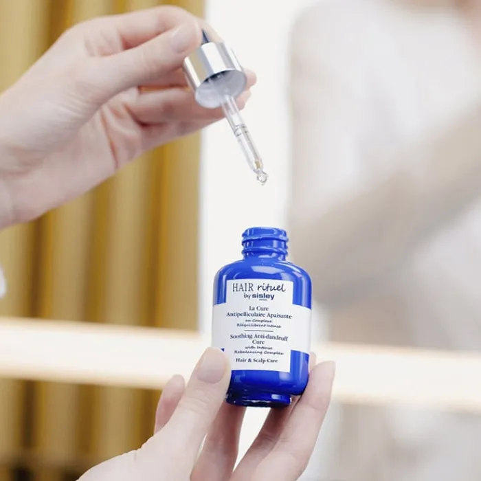 Utiliza La Cure Antipelliculaire Apaisante de Sisley con el champú como primer paso del ritual calmante anticaspa para tratar los factores subyacentes responsables de la aparición de la caspa y las sensaciones de malestar.
