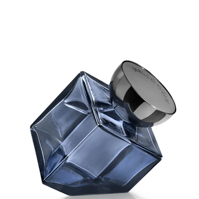 El frasco My Wolrd Eau de Parfum de Halloween está diseñado con cristal facetado en un profundo azul medianoche, lo que le da un aspecto similar a una joya tallada.