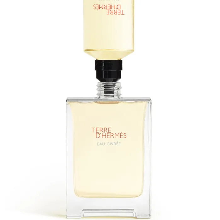 Creada por la perfumista de la firma Christine Nagel, Terre d’Hermès Eau Givrée pertenece a la familia olfativa Fresca. Comienza por una nota de salida vigorosa de cidra combinada con un corazón fresco de baya de enebro finalizando con el poder de la pimienta de Timut. Un soplo helado con notas minerales y amaderadas icónicas en la colección Terre d’Hermès.