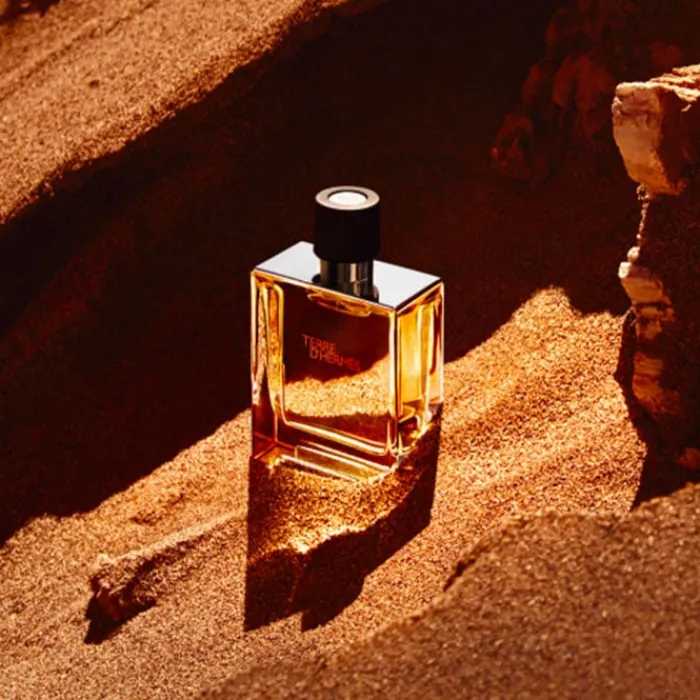 Terre D’Hermès Eau de Parfum fue creada por Jean-Claude Ellena y pertenece a la familia olfativa Amaderada Chipre. Se inicia con las adictivas y fundentes notas de pomelo y naranja, que dan paso a un corazón muy característico de Flint, para acabar con unas notas de fondo amaderadas, musgo de roble y benjuí. Todas ellas crean una estela de seducción y elegancia, perfecta.