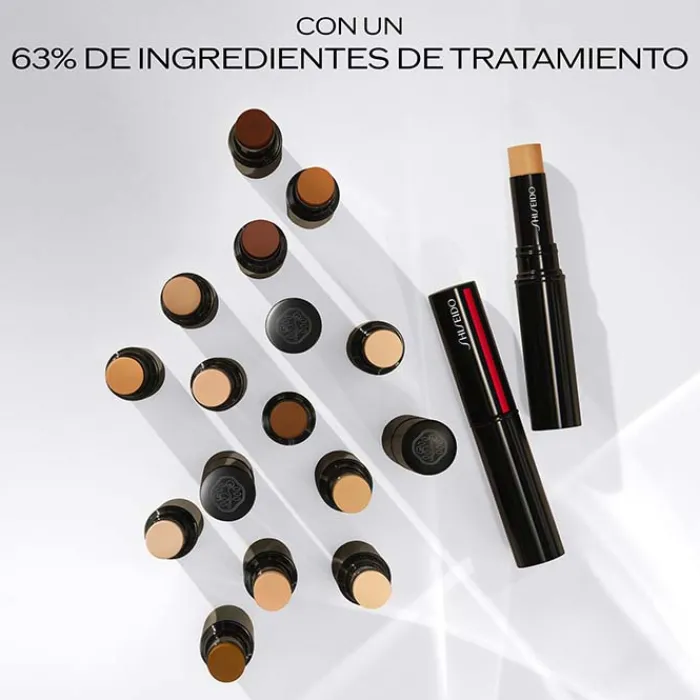 El stick Synchro Skin Radiant Lifting Concealer se adapta instantáneamente a cualquier luz gracias a la tecnología Light-Adjusting Technology de Shiseido. Su textura ultracremosa, agradable y ligera proporciona una cobertura modulable de media a alta, apta para todo tipo de piel. Contiene ácido bio-hialurónico, extracto de cártamo, extracto de semillas de yuzu y té verde que hidratan y cuidan la piel.