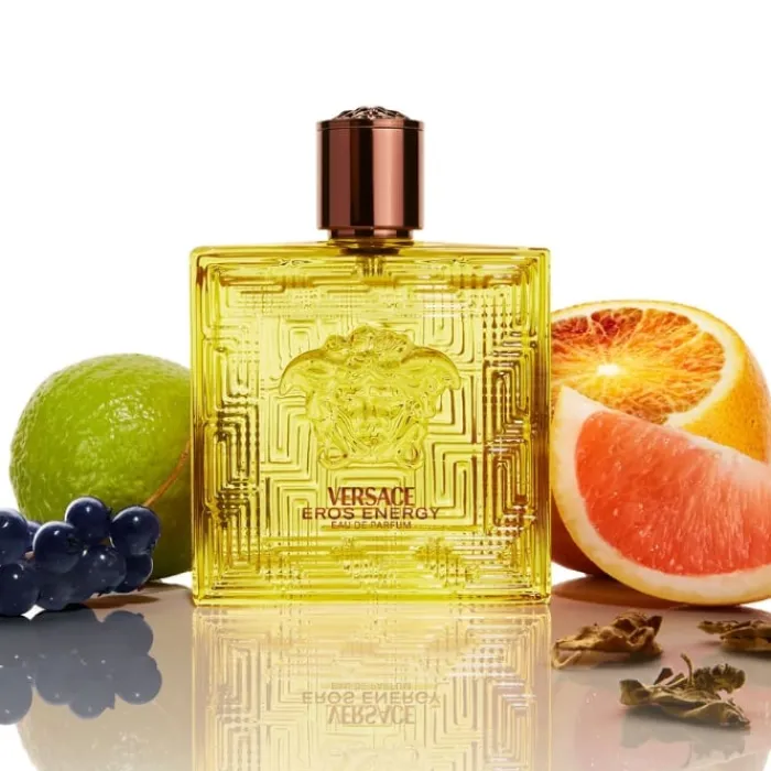 Creada en 2024 por el perfumista Jordi Fernández, Versace Eros Energy Eau de Parfum pertenece a la familia olfativa cítrica ámbar. Sus notas de salida son una ola refrescante de limón, lima, pomelo, naranja sanguina, bergamota de Sicilia y mandarina. Las notas de ámbar blanco, pimiento rosa y grosellas negras en el corazón le aportan sensualidad, mientras que su fondo de almizcle, pachulí y musgo de roble, empoderan tu espíritu manteniéndote fiel al encanto Eros.