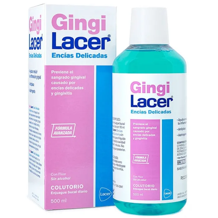 Colutorio Gingilacer de Lacer es un enjuague bucal que previene el sangrado gingival de las encías delicadas.