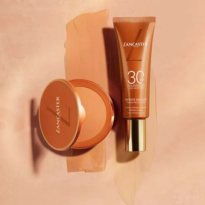 Infinite Bronze Tinted Protection Sunlight Cream SPF30 de Lancaster es un protector solar facial con color que mejora el bronceado de la piel.