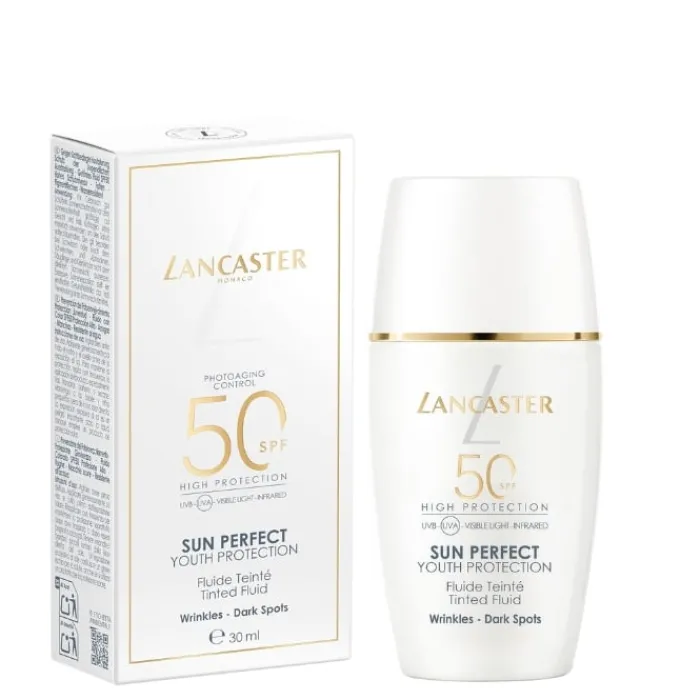 Sun Perfect Perfecting Fluid SPF50 de Lancaster es un protector solar facial con color que perfecciona la piel y previene la aparición de manchas y arrugas.