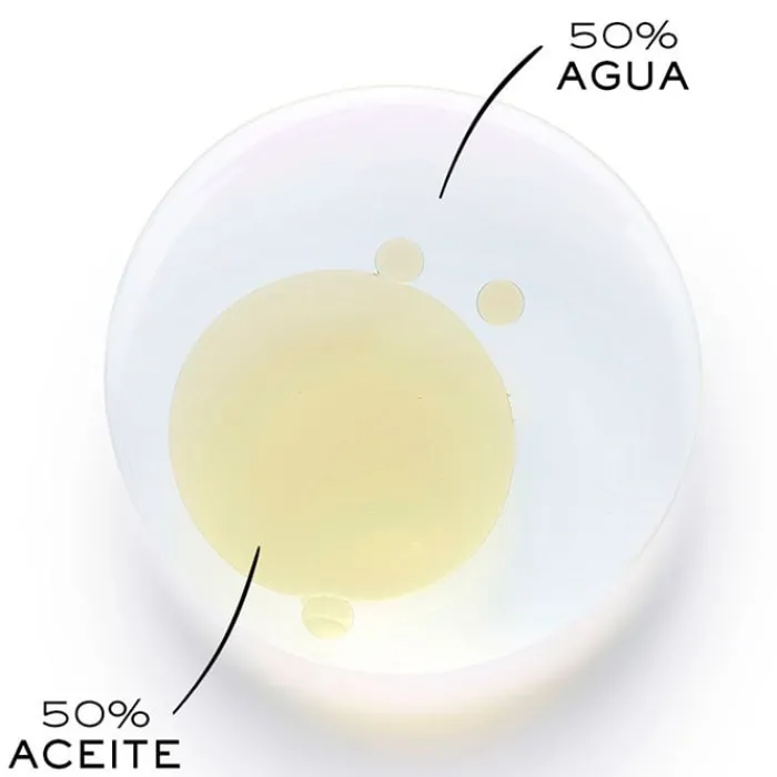 En su 50% de fase oleosa contiene aceite de jojoba para suavizar e hidratar la piel sin sensación grasa y aporta propiedades antioxidantes. El aceite de almendra contiene propiedades humectantes que pueden ayudar a hidratar la piel. En su 50% de fase acuosa, el complejo de activos con arginina y mnadecassoide aportan propiedades antioxidantes y hace un efecto calmante sobre la piel, cuidando y protegiendo las pestañas.