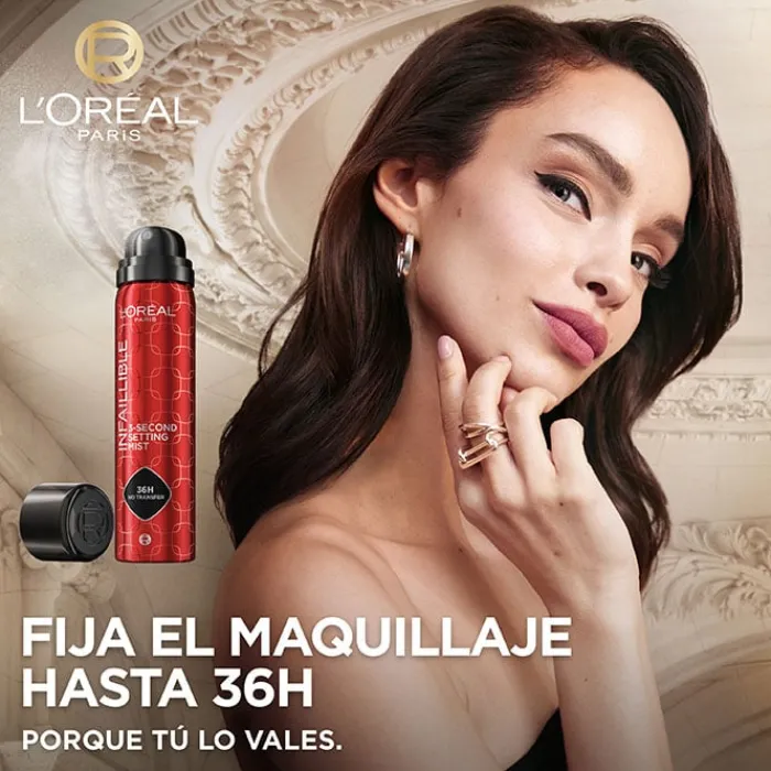 Infaillible Spray Fijador 36h de L’Oreal es un fijador de maquillaje de larga duración, waterproof y oil-proof.