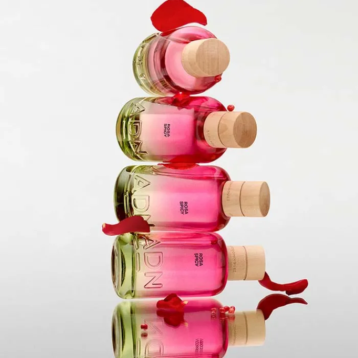 Creado en 2025, ADN Rosa Spicy Eau de Parfum pertenece a la familia olfativa floral, almizclada y amaderada. De fórmula vegana y elaborado con un 96% de ingredientes de origen natural y alcohol 100% de origen natural, presenta una salida de pimienta rosa, acompañado de un corazón floral con la rosa de Bulgaria y un fondo almizclado.
