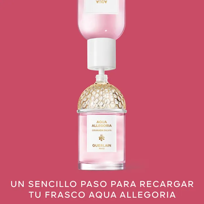 «Granada Salvia es el encuentro sorprendente de una deliciosa granada y el frescor de la salvia». Aqua Allegoria es un símbolo innegable del compromiso de Guerlain con el planeta.