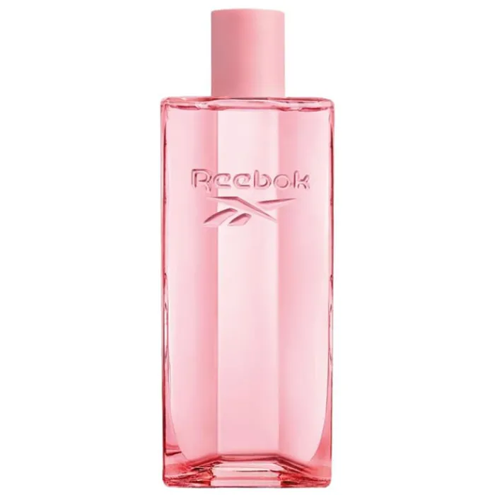 El frasco icónico de Reebok Activate Your Senses For Her EDT en líneas rectas, con la firma grabada sobre el cristal transparente y coronado con un tapón de color rosa ligero que armoniza con la suavidad y feminidad de su jugo interno.