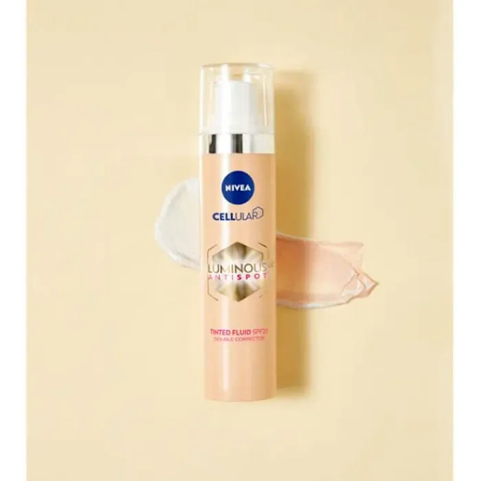 Cellular Luminous630 Antimanchas Fluido Color de Nivea, ofrece un tono natural y cubre las imperfecciones.