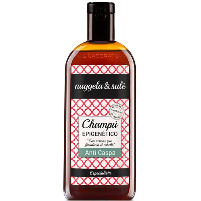 El Champú Epigenético Anti-Caspa de Nuggela & Sulé previene y elimina la caspa grasa y seca. La piel del cuero cabelludo está hidratada y equilibrada, alivia la sensación de picor, ralentiza la caída del cabello, fortalece el cabello, aporta brillo y suavidad gracias a su acción epignética.