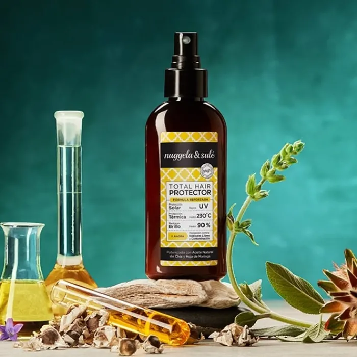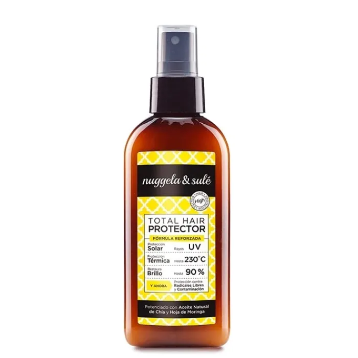 Indicado para todo tipo de cabello, es libre de parabenos y está testado dermatológicamente. Con Nuggela & Sulé Protector Capilar Total se restaura el brillo natural, mejorando el alisado y la flexibilidad del cabello.
