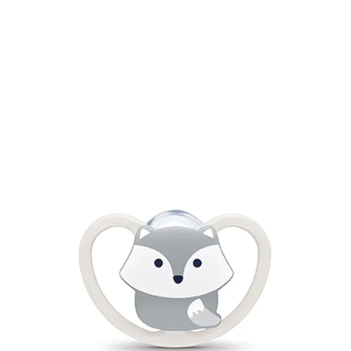 Incluye una plana y suave tetina de cuello más estrecho y delgado. No contiene BPA. Como resultado del uso de Nuk Chupete Space 0-6 Meses Silicona se garantiza el confort de los bebes, incluso los que poseen la piel más sensible.
