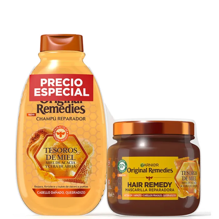 Tesoros de Miel Mascarilla Reconstituyentede de Original Remedies es una mascarilla intensiva que repara y revitaliza el cabello reseco y sensibilizado.