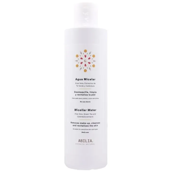 Agua Micelar de Abilia es un agua desmaquillante de origen natural para rostro y ojos que limpia y revitaliza.
