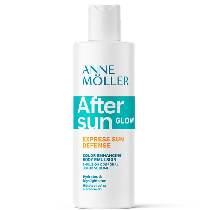 EXPRESS Sun Defense After Sun Glow de Anne Möller es una emulsión corporal embellecedora que hidrata y realza el bronceado.