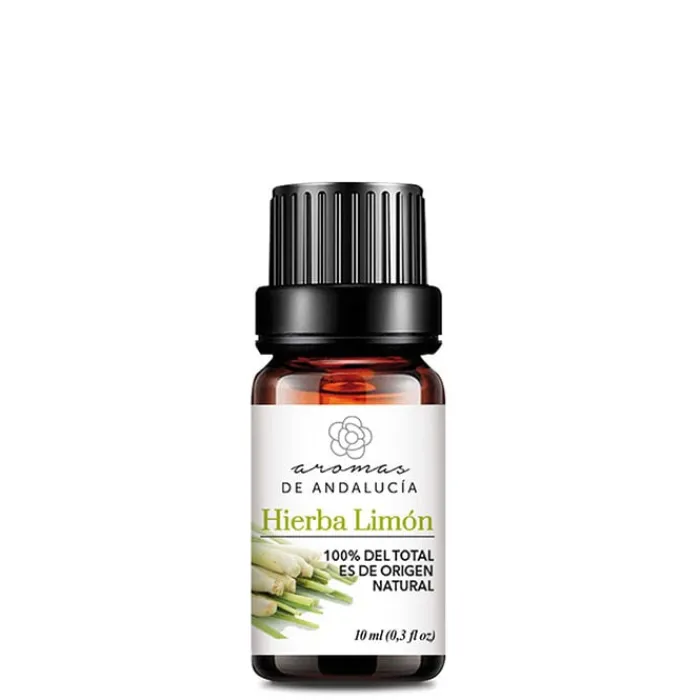 Aceite Esencial de Hierba Limón de Aromas de Andalucíaes un aceite 100% natural, con propiedades antimicrobianas, fungicidas y ansiolíticas.