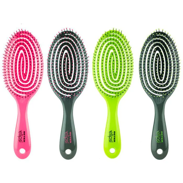 Beter Cepillo Desenredante Elipsi de cabezal flexible que se adapta al contorno de la cabeza incluye púas anti-enredos que evitan las roturas de las fibras capilares. Es perfecto para facilitar el cómodo peinado y secar la melena mediana y corta. Se desliza suavemente evitando los molestos tirones y la rotura de las fibras capilares, el peinado luce más saludable y radiante.