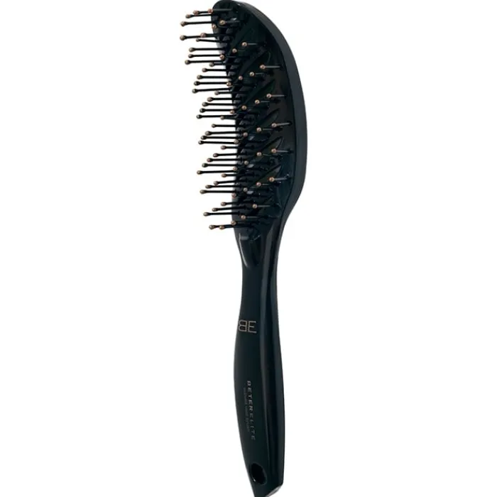 Este cepillo de pelo posee una ligereza y comodidad extraordinaria. Su forma ergonómica se adapta perfectamente a la palma de la mano facilitando su sujeción y las púas con bolita esférica masajean y recorren la forma del cuero cabelludo activando la microcirculación sanguínea. Contiene púas de nylon de gran resistencia que permiten moldear el cabello y crear un acabado profesional. Indicado para todo tipo de cabellos. Con Beter Cepillo Esqueleto Curvo Ergonómico el cabello se desenreda sin tirones, luce brillante, flexible y con movimiento.