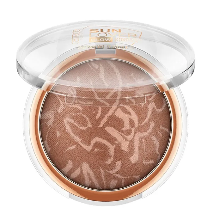 Son polvos bronceadores de formulación vegana que contienen unos pigmentos que reflejan la luz y proporcionan un brillo resplandeciente que realzan y embellecen el bronceado. De textura polvo sedosa efecto mármol ha sido cocido al horno y se adapta a todos los tipos de piel. Con Catrice Sun Lover Glow Bronceador la piel luce un bronceado radiante.