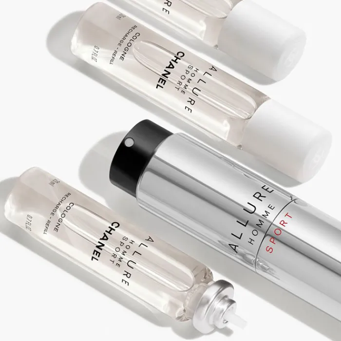 ALLURE HOMME SPORT Cologne ofrece una generosa estela de perfume y se vaporiza directamente sobre la piel o en el interior de las prendas. El vaporizador de viaje recargable combina tecnicidad y practicidad. Su formato es ideal para viajar o después de practicar deporte, para llevar siempre consigo.