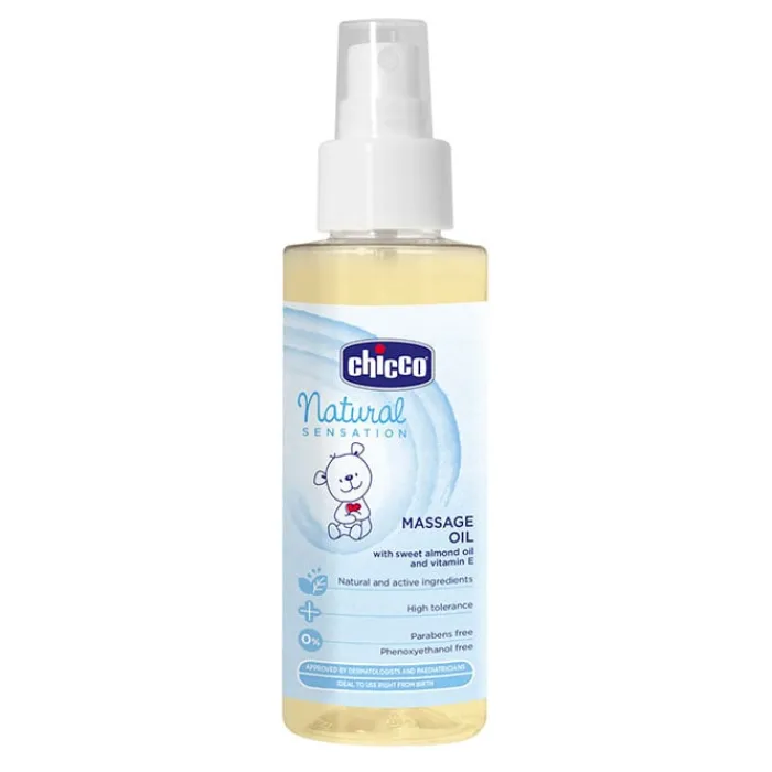 Aceite de Masaje Natural Sensation de Chicco es un aceite nutritivo con aceite de almendra y vitamina E.