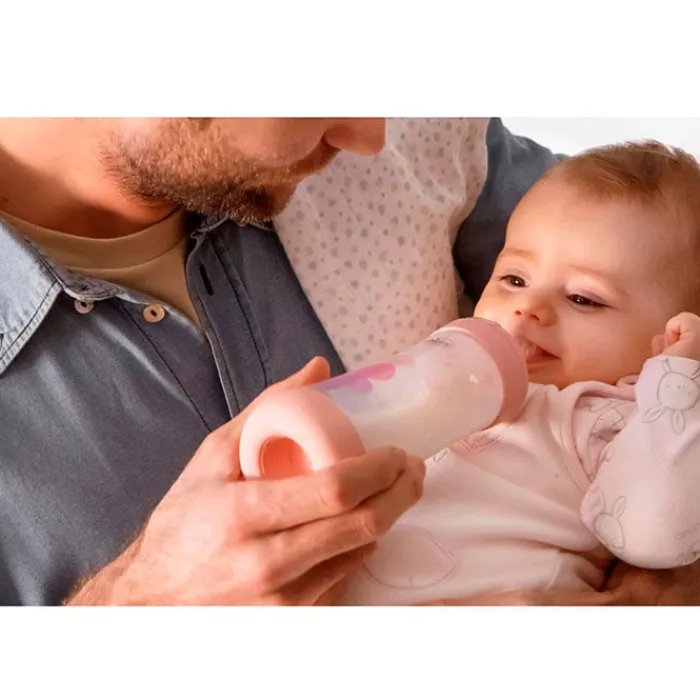 Biberón Perfect 5 Rosa 0 Meses+ de Chicco es un biberón con tetilla de silicona extra suave, anticólico y bio funcional.