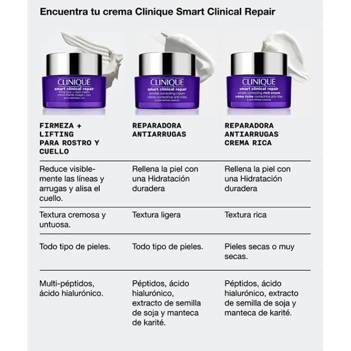 Clinique Smart Clinical Repair Cream es un tratamiento para el rostro que fortalece, hidrata y repara visiblemente líneas y arrugas.