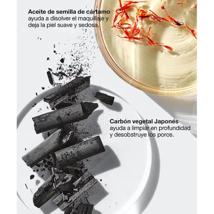 Entre los ingredientes del desmaquillante de Clinique Take The Day Off Charcoal, el carbón vegetal japonés, purifica ayudando a limpiar poros profundamente y el aceite de semilla de cártamos, ayuda a eliminar grasa, disolver el maquillaje, aportar suavidad y nutrir la piel. Indicado para pieles mixtas grasas a grasas.