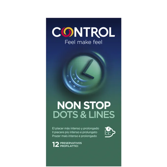Este preservativo diseñado con puntos y líneas estratégicamente ubicados genera una intensa estimulación que prolongan la excitación permitiendo disfrutar más tiempo y con mayor satisfacción. Como resultado del uso de Control Preservativo Non Stop se favorece e intensifican las sensaciones placenteras.