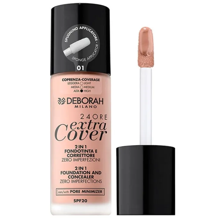 Incluye un aplicador en esponja que favorece su utilización en los lugares menos accesibles. Su textura sedosa y confortable, posee una alta cobertura y se distribuye uniformemente por todo el rostro. Deborah 24Ore Extra Cover es perfecto para perfeccionar la apariencia de todo tipo de piel, luce mate, impecable y radiante.