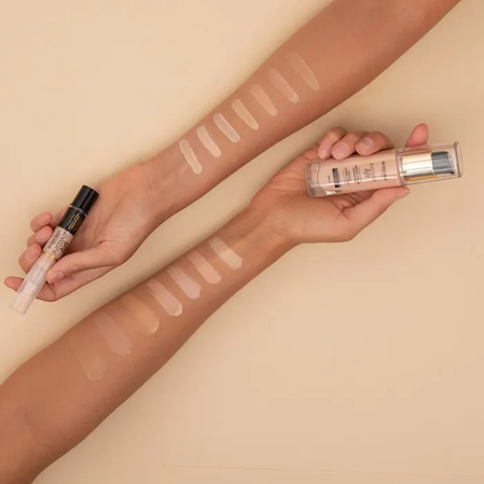 IL130519A INGREDIENTS: AQUA, DIMETHICONE, CAPRYLYL METHICONE, ETHYLHEXYL SALICYLATE, ETHYLHEXYL METHOXYCINNAMATE, TITANIUM DIOXIDE, BIS-PEG/PPG-14/14 DIMETHICONE, PEG-10 DIMETHICONE, POLYMETHYL METHACRYLATE, DIMETHICONE/VINYL DIMETHICONE CROSSPOLYMER, GLYCERIN, BUTYLENE GLYCOL, DISTEARDIMONIUM HECTORITE, SODIUM CHLORIDE, CENTELLA ASIATICA EXTRACT, MUSA SAPIENTUM FLOWER EXTRACT, LECITHIN, LYSINE, PAEONIA ALBIFLORA ROOT EXTRACT, TOCOPHERYL ACETATE, TOCOPHEROL, ASCORBYL PALMITATE, TRIETHOXYCAPRYLYLSILANE, ALUMINUM HYDROXIDE, CAPRYLIC ACID, CAPRYLYL GLYCOL, CITRIC ACID, DISODIUM EDTA, ETHOXYDIGLYCOL, ETHYLHEXYLGLYCERIN, GALACTOARABINAN, MAGNESIUM CHLORIDE, SILICA, SODIUM LAUROYL GLUTAMATE, XYLITOL, BENZYL ALCOHOL, PHENOXYETHANOL, SODIUM DEHYDROACETATE, PARFUM, +/-: CI 77891, CI 77491, CI 77492, CI 77499.