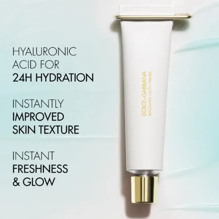 Dolce & Gabbana Bergamot Glow Primer está elaborado con una textura gel ultraligera, rica en ingredientes naturales como la bergamota italiana, el ácido hialurónico y agua de mar, elevando así la rutina de belleza a un nivel de cuidado superior.