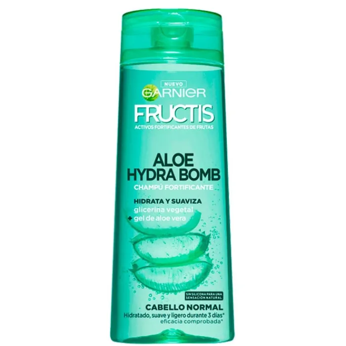 Recomendado para fortalecer sin apelmazar los cabellos normales. Es libre de parabenos y siliconas. Con el uso habitual de Fructis Aloe Hydra Bomb Champú el cabello aumenta su resistencia, luce saludable, vigoroso y radiante.