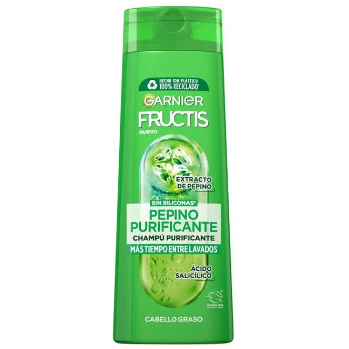 El champú de la línea Pepino Purificante de Fructis es fortificante. Su fórmula combina el extracto de pepino con agentes purificantes, que fortalecen la fibra capilar y purifican.