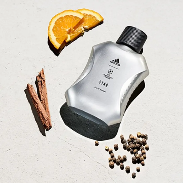Esta fragancia masculina pertenece a la colección Adidas UEFA STAR y está inspirada en los momentos más memorables que fútbol. Uefa Star Eau de Parfum pertenece a la familia olfativa Aromática Cítrica. Se inicia con una salida de notas de naranja que se funde en un corazón de madera de cedro y culmina con pimienta negra que potencia su aroma duradero proporcionando un radiante frescor durante todo el día. Su formulación vegana ha sido elaborada con aceites esenciales naturales que proporcionan una agradable sensación de bienestar que conecta mente y cuerpo.