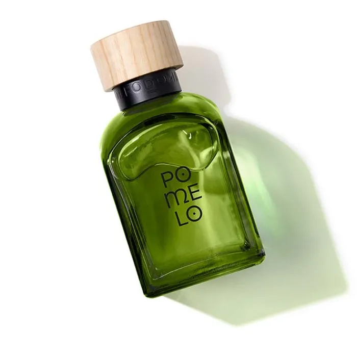 El frasco de Adolfo Domínguez Pomelo Eau de Toilette reivindica la importancia de la sostenibilidad fabricado con vidrio reciclado, reciclable y reutilizable de por vida, gracias al sistema de rosca. El tapón es 100% de madera FSC y 0% plástico y contiene una etiqueta de papel FSC procedente de bosques bien gestionados. Un diseño atemporal y único para toda la colección hecho en España.