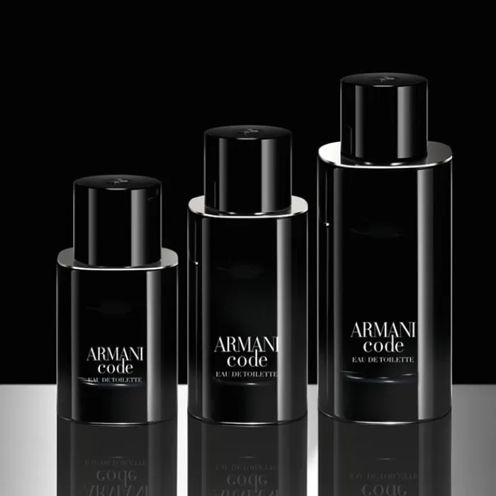 El frasco de Armani Code Eau de Toilette tiene una forma única, redondeada, elegante y masculina, realzada por reflejos plateados y experiencias sensoriales. Su diseño, creado para perdurar, es recargable en todos los tamaños de vaporizador.