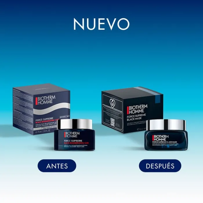 Force Supreme Black Mask de Biotherm Homme es una crema antiedad de noche que energiza, reafirma y revitaliza la piel.