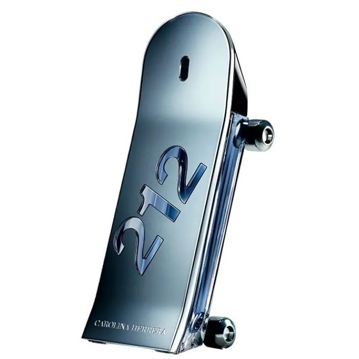 El frasco de Carolina Herrera 212 Heroes recrea un skate plateado de vidrio transparente que deja ver su jugo de vanguardia a la perfección, éste es símbolo de la juventud rebelde, para despreocupados héroes que viva la vida al máximo.