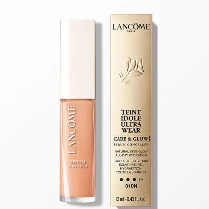 Teint Idole Ultra Wear Care & Glow Concealer de Lâncome es un sérum corrector de cobertura media y acabado luminoso natural.