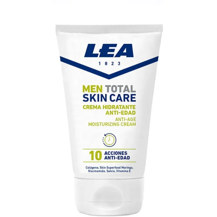 Men Total Skin Care Crema Facial Anti-Edad de Lea es un tratamiento hidratante facial antienvejecimiento.