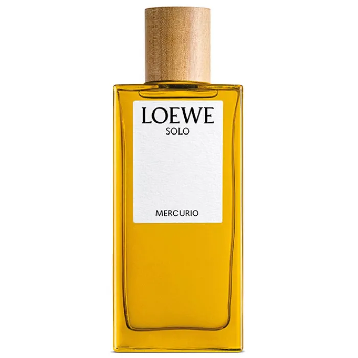 LOEWE Solo Mercurio es un Eau de Parfum creado en el año 2020 por la maestra perfumista Nuria Cruelles. Pertenece a la familia olfativa Aromática, Hespéride, Almizclada y Especiada. En sus notas de salida, la delicadeza del acorde aromático de geranio y hojas de higuera, un aroma contrapuesto al acorde almizclado de ámbar y almizcle, un juego de notas olfativas en el corazón que genera una dualidad increíble. Para finalizar, el toque especiado y fresco crea una armonía asombrosa y moderna con la dulzura del regaliz y el tabaco de miel junto con la chispeante mandarina y el azahar.