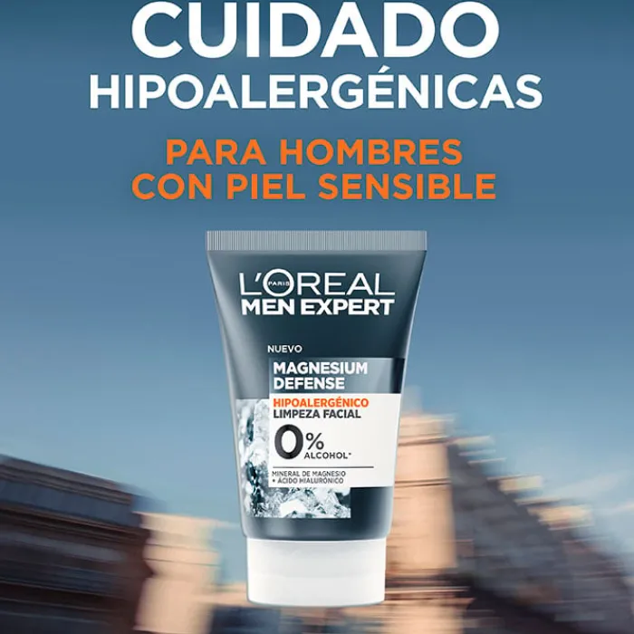 Magnesium Defense Limpieza Facial deL’Oréal Men Expert es un gel limpiador para el rostro de hombre con ácido hialurónico y mineral de magnesio que elimina impurezas e hidrata la piel.